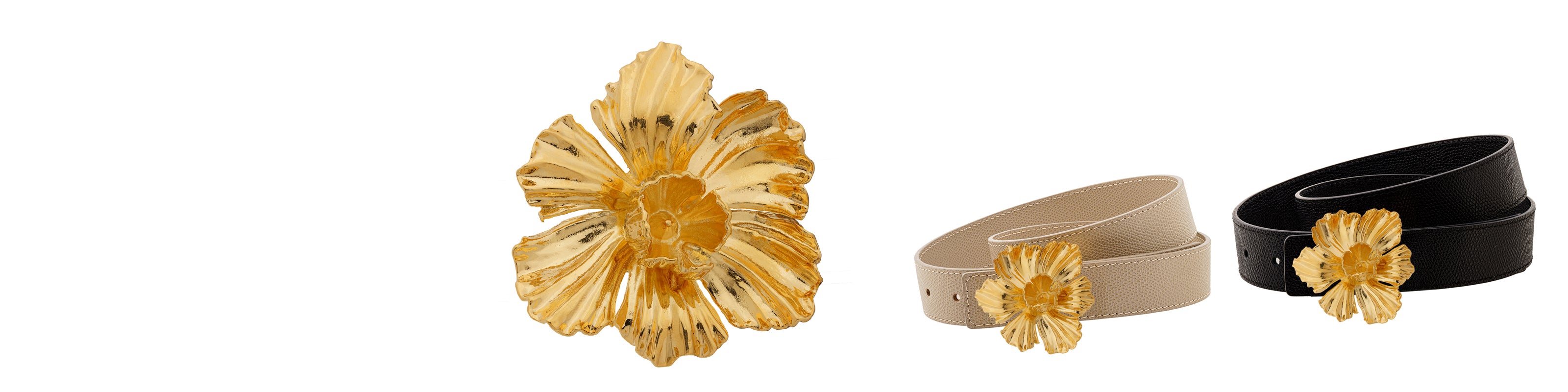 Big Flower Greige Gold Belt