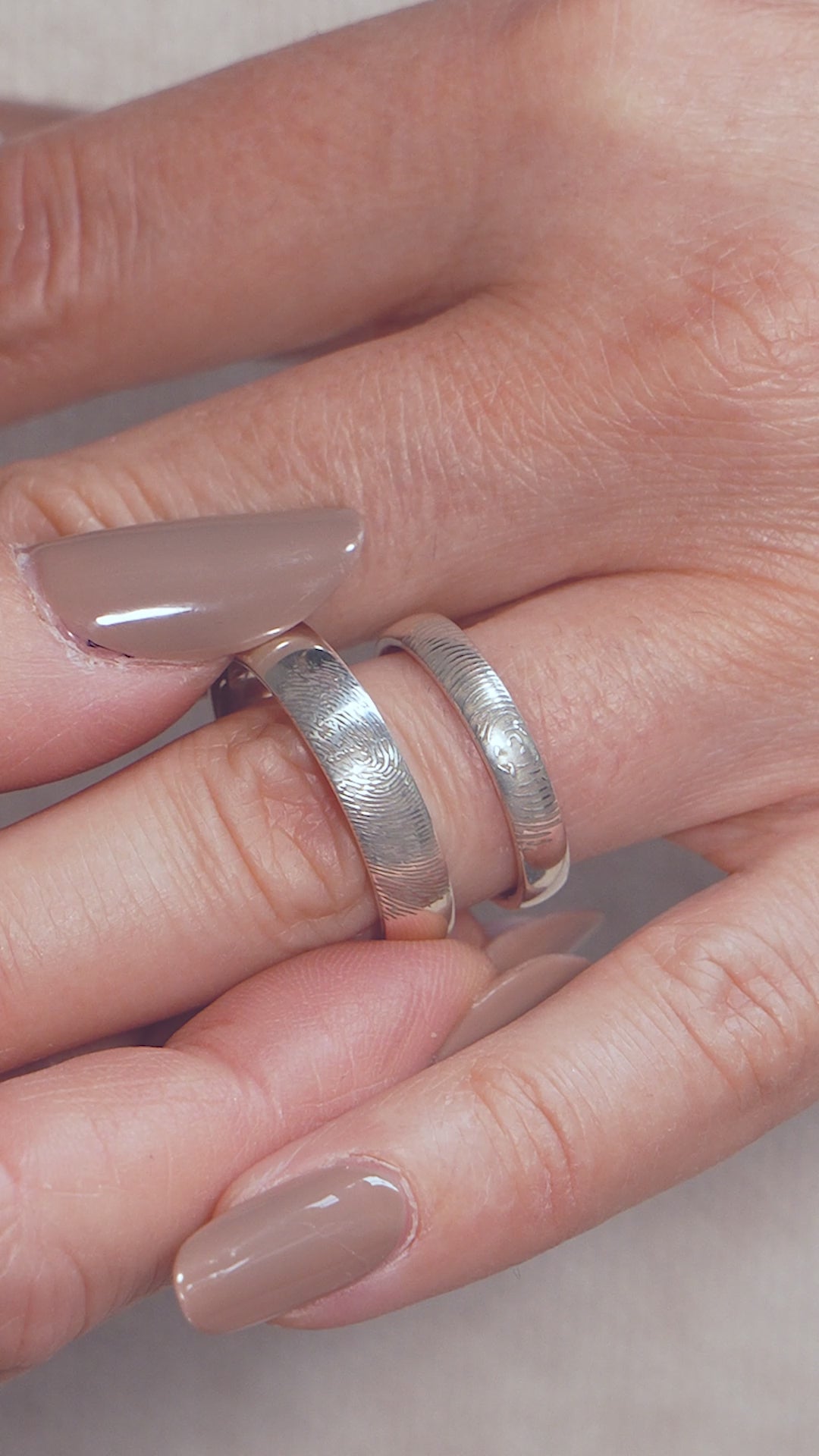 Your fingerprints and your loved one's fingerprint. The wedding rings are handmade.Â