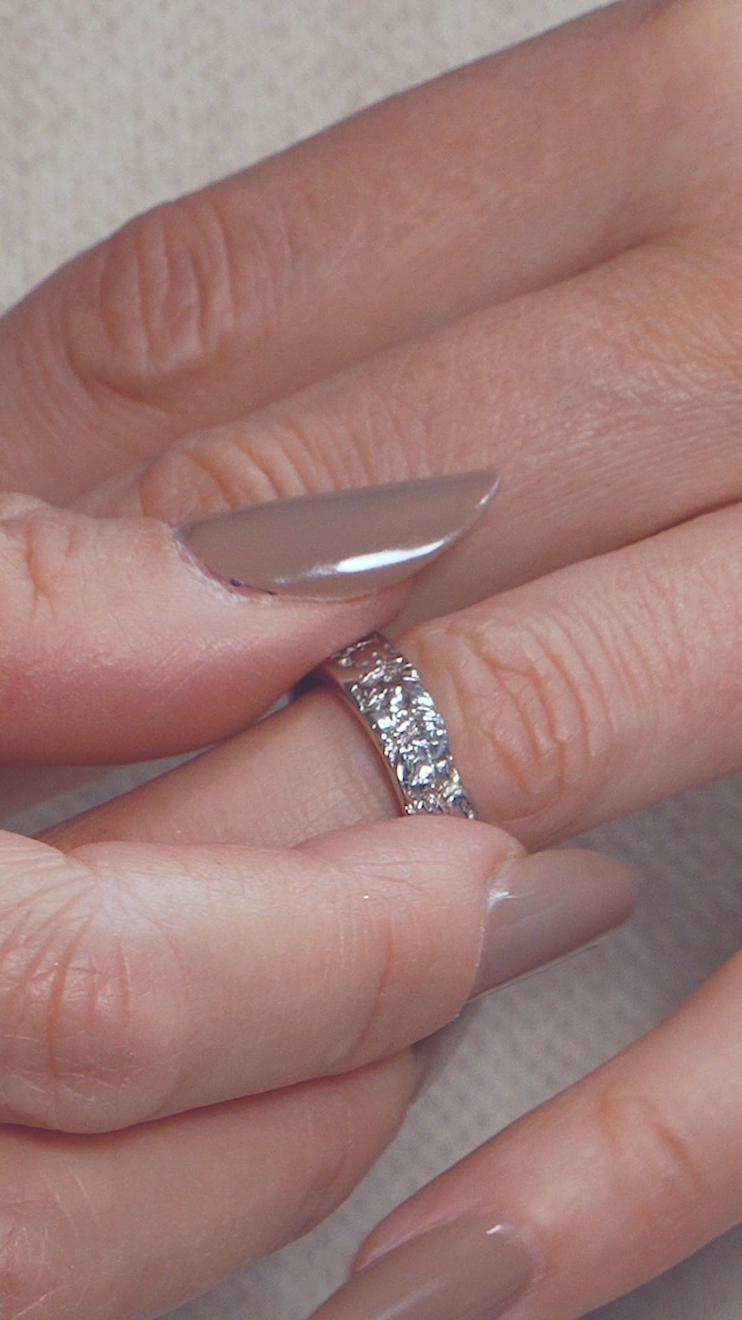 Rings with textured surface.